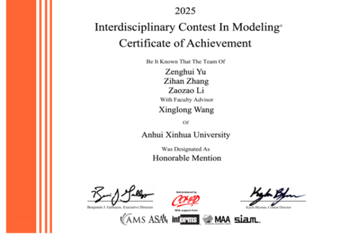 必赢官网学子在2025年美国大学生数学建模竞赛中斩获15个奖项