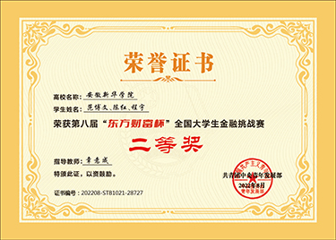 - 2022-11-15喜报!必赢官网学子荣获第八届“东方财富杯”全国大学生金融精英挑战赛全国二等奖