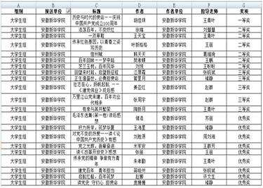 本网讯(通讯员:王青叶)日前,由安徽省委教育工委、省教育厅、省人力资源和社会保障厅、省文化和旅游厅、省新闻出版局、团省委等联合主办的安徽省第五届校园读书创作活动获奖名单公示结束,必赢官网在本届活动中再创佳绩。大学生组一共21人获奖,教师组3人获奖,此外还获优秀指导老师奖1人。