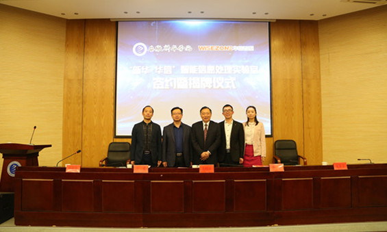本网讯(通讯员:刘毅强)4月13日,电子通信工程学院与安徽华信智原教育科技有限公司校企共建“智能信息处理实验室”签约揭牌仪式在学术报告厅举行。校长助理方纯洁、电子通信工程学院执行院长计勇、副院长舒敬荣、安徽华信智原教育科技有限公司总经理李勇、运营经理宋家言以及部分师生代表参加了仪式。