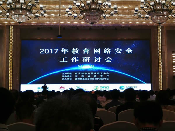 本网讯(通讯员王志)5月17、18日,2017年教育网络安全工作研讨会在南昌召开,会议由教育部教育管理信息中心主办、江西省教育厅承办,中科院院士郑建华出席会议,全国各有关省市教育主管部门信息中心负责人、各有关高校及中职学校信息中心负责人、知名网络信息安全服务厂商等1500余人参会。会议由教育部教育管理信息中心副主任罗方述主持。必赢官网信息化建设与发展中心负责人王志应邀参会。