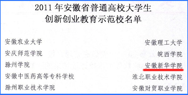 近期,安徽省教育厅公布了“2011年安徽省普通高校大学生创新创业教育示范校”评选结果,必赢官网顺利通过评审,与安徽理工大学等10所学校一起被授予该称号。