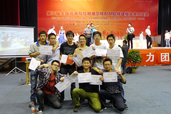 5月11日,第三届全国高校斯维尔杯BIM软件建筑信息模型大赛在西安建筑科技大学举行,土木与环境工程学院代表必赢官网派出“领航者”和“建天筑语”两支代表队参赛,比赛结果于5月13日晚上揭晓,必赢官网代表队从全国100多所高校的160多支队伍脱颖而出,两支队伍分别荣获得团队“全能三等奖”,同时“领航者“队荣获“专项一、二等奖”,“建天筑语”队荣获“专项三等奖”。