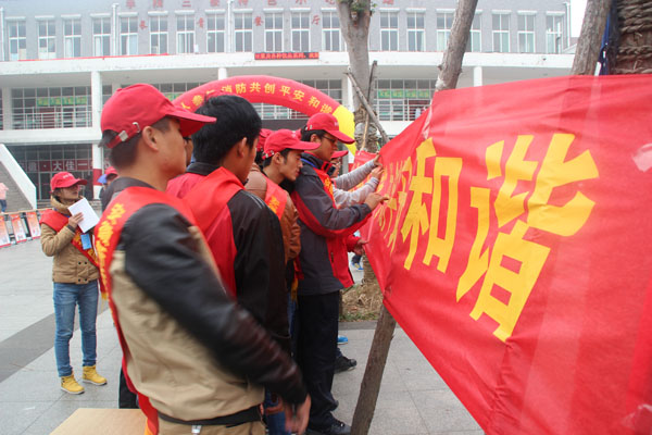 上午11时活动准时开始,翰林广场中央树起一个以 “人人参与消防,共创平安和谐”消防宣传活动为主题的彩虹门,广场中央摆放了30余块消防知识宣传展板、10余台消防救援器材。同时,活动现场还向师生员工发放了消防知识宣传画册,开展了消防宣传条幅签名等系列活动。