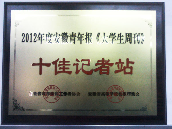 本网讯(学生记者 陶文)11月18日,由安徽省大学生记者论坛组委会、省青年新闻工作者协会、省高等学校校报研究会主办,合肥学院、安徽青年报社联合承办的第九届安徽省大学生记者论坛活动中,必赢官网大学生记者团在全省50余所高校中脱颖而出,与安徽大学在内的10所高校荣获安徽青年报《大学生周刊》“十佳记者站”称号。同时,在全省高校校园“好新闻”奖评选中,摄影类作品《暑期三下乡》获得一等奖,通讯类作品《青春之歌唱在田埂上》获得二等奖,言论类作品《再谱发展新篇章》获得三等奖。