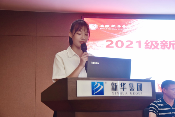 21级新闻学专业学生代表陈铉洁发言,许下青春的誓言,代表广大新闻学莘莘学子在未来的学习生涯中做出具体且全面的规划,表示将会带着满心期待开始新的征程。