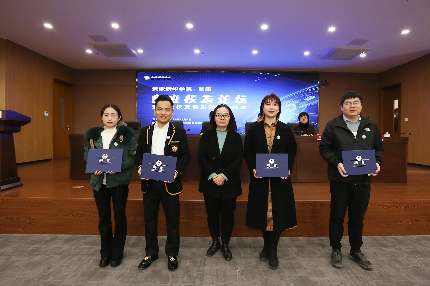 盛晓青为创业校友俱乐部主席、副主席、秘书长、副秘书长颁发聘书。