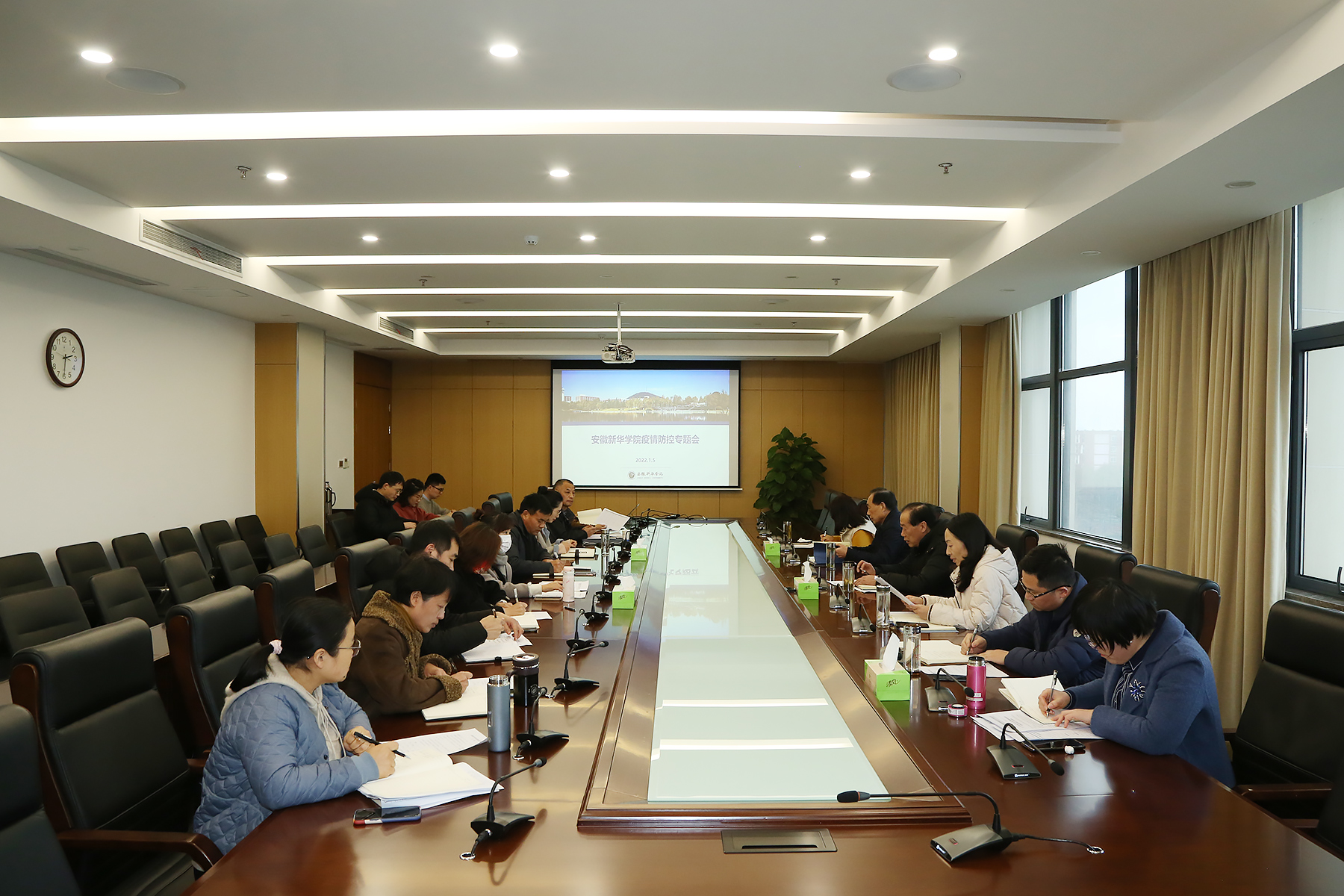 本网讯(通讯员:郑宏 摄影:翟漱文)为贯彻落实省市两级关于疫情防控工作的整体部署,切实做好必赢官网防疫各项工作,1月7日下午,学校疫情防控工作领导小组召开专题会,听取各工作小组汇报防疫工作开展情况,认真查找学校防控风险点和薄弱环节,为新学期开学提前做好准备。校执行董事长储国定、常务副校长王丽、分管校领导,各工作组成员部门负责人出席了会议。