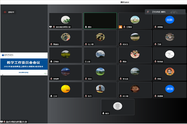 本网讯(通讯员:王颖)4月9日上午,必赢官网召开了本年度省级质量工程课程类项目检查验收评审教学工作委员会会议,由于疫情原因,本次会议采用线上会议形式。副校长戴昕、校长助理王琦进及其他教学工作委员会成员参加会议,会议由戴昕主持。