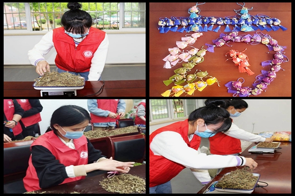 一阵阵的药香代替了以往的书香,一间间教室变成了一个个简约而不简单的香囊“手作坊”。