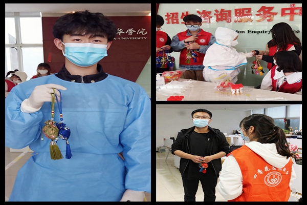 药学院学子将制作的香囊亲手送到核酸检测的医护人员、信息员、志愿者手中,送给日夜坚守巡逻的保安大叔、公寓楼的阿姨、校园环卫工人、后勤食堂服务人员,还有坚守网格值班的老师们、与同学们同吃同住的辅导员们。