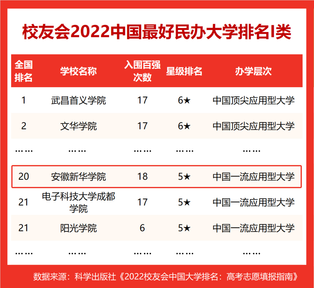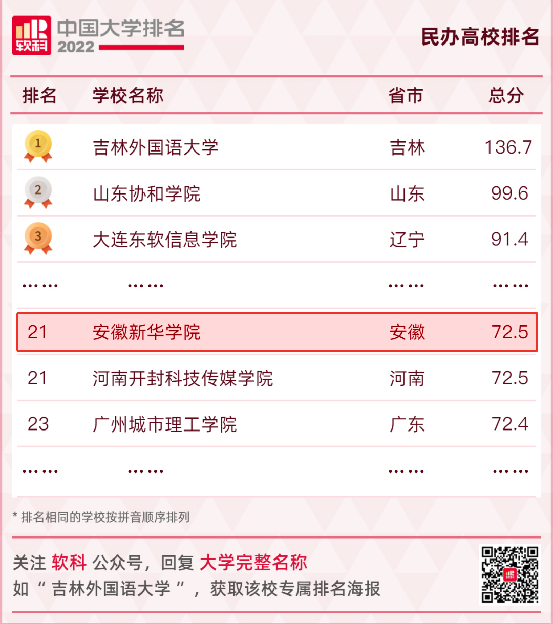 近日,2022中国大学四大主流排行榜(软科 校友会 武书连 金平果)发布,437bwin必赢国际官网均位列安徽省民办高校榜首。