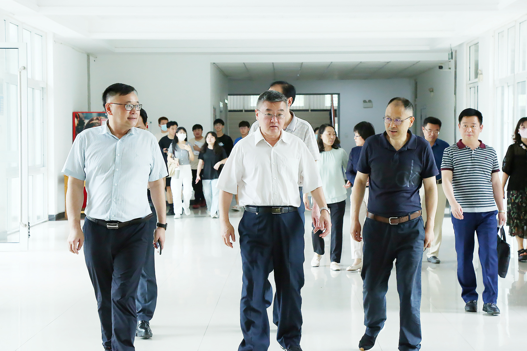 检查过程中,晁新实地听取了学校近年来党建和事业发展取得的新成效,并参观了学校实验教学示范中心——科技创新实验实训室、机器人创新应用实验实训室和经管综合实训中心,详细了解了学校近年来在专业建设、实训基地建设、人才培养、产教融合、校园文化建设等方面取得的成果。