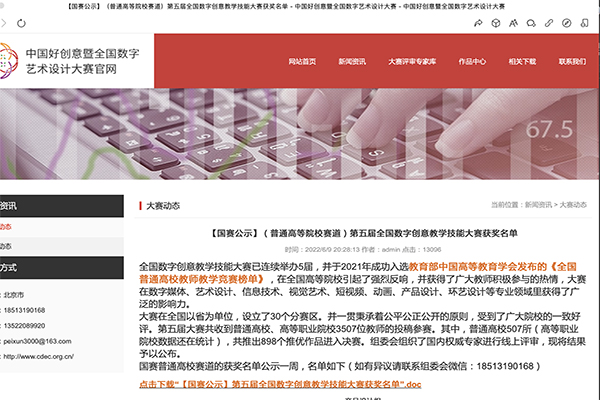 据悉,全国数字创意教学技能大赛已连续举办5届,并于2021年入选教育部中国高等教育学会发布的《全国普通高校教师教学竞赛榜单》,在全国高等院校引起了强烈反响,并获得了广大教师积极参与的热情,本次大赛共计3507位教师参赛,大赛在数字媒体、艺术设计、信息技术、视觉艺术、短视频、动画、产品设计、环艺设计等专业领域里获得了广泛的影响力。