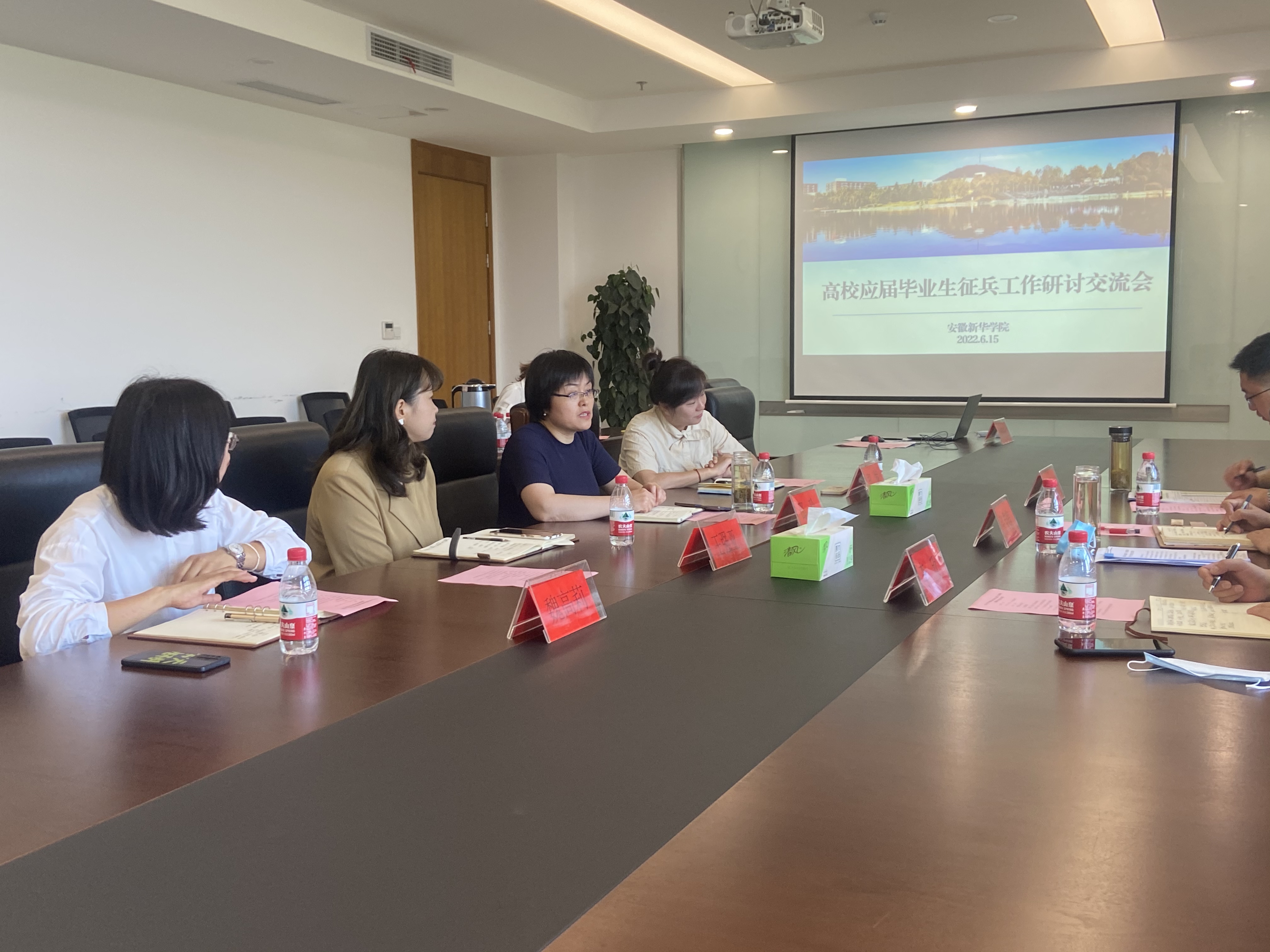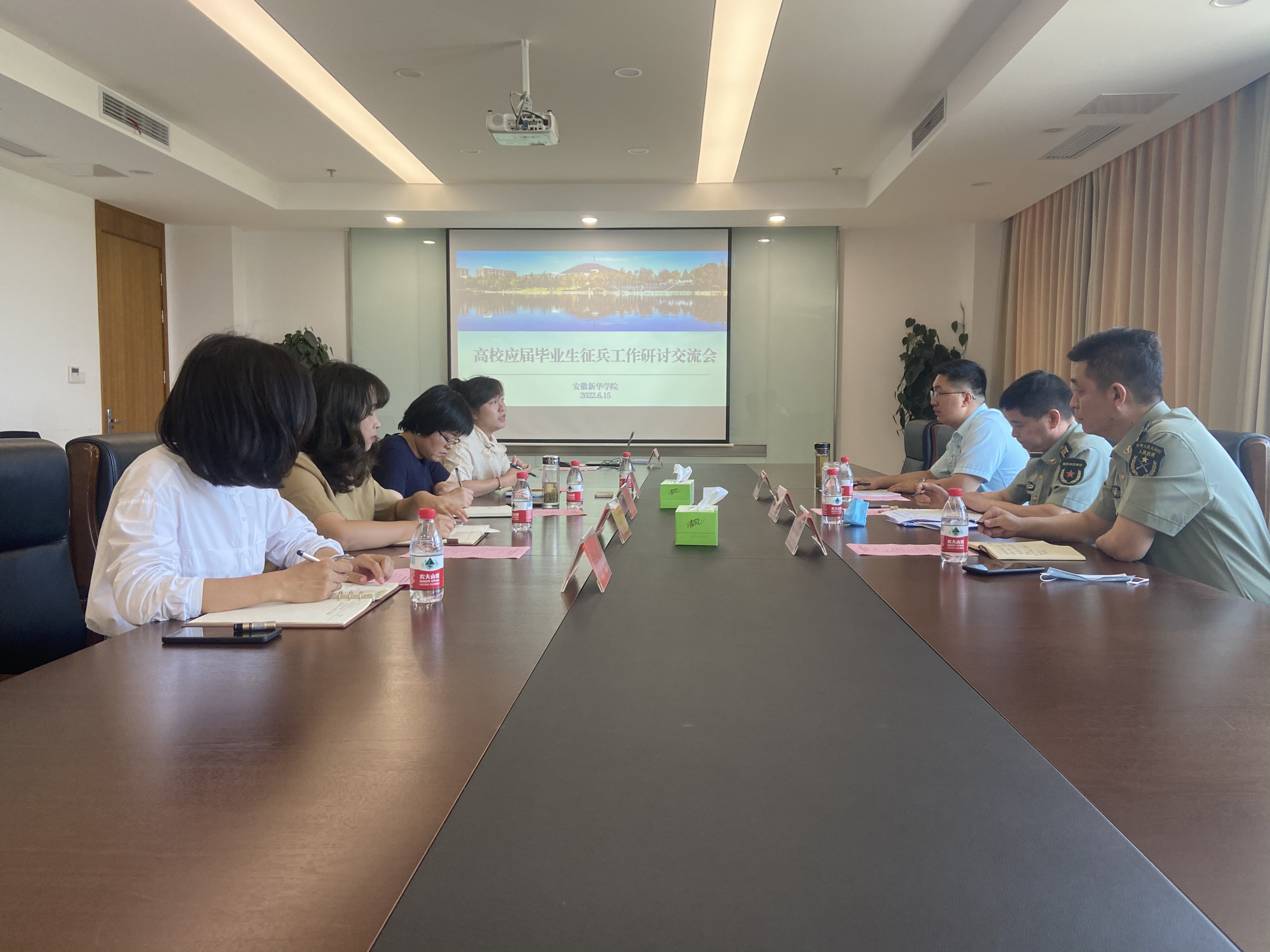 本网讯(通讯员:凌舒畅)6月15日,蜀山区人民武装部一行莅临必赢官网调研征兵工作。校长助理邵玲,征兵工作站站长郑妮,大数据与人工智能学院院长助理魏高莉,征兵工作站相关工作人员参加座谈会。