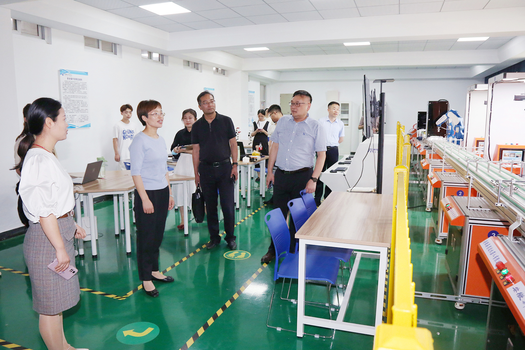 孔桂红一行实地考察了必赢官网实验实训中心。在科技创新实验实训室、机器人综合实验实训室,正在备赛的同学们积极展示了自主研发的机器人以及学校引进的螺旋桨装配生产线。