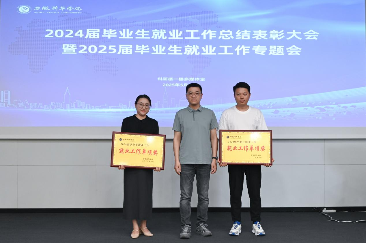 会上人事处副处长孙燕荣宣读了《关于表彰2024届毕业生就业工作先进集体单位、就业单项奖单位和先进个人的决定》,授予大数据与人工智能学院、电子工程学院/智能制造学院、药学院“2024届毕业生就业工作先进集体”荣誉称号;授予艺术学院、城市建设学院“2024届毕业生就业工作单项奖”荣誉称号;授予朱敏等20位同志“2024届毕业生就业工作先进个人”荣誉称号。