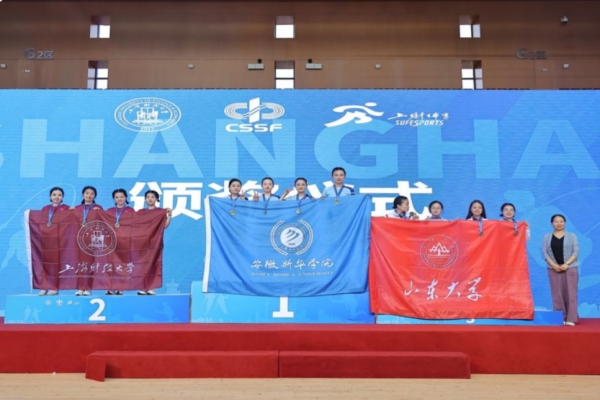 在女子4×30秒单摇接力赛中,杨倩倩、陈可、潘丁源、陈梦婷四位新华学子配合默契,凭借出色的发挥和稳定的表现,与上海财经大学和山东大学的队伍一同站上了最高领奖台,为学校赢得了荣誉。