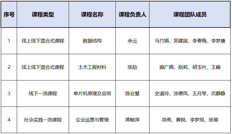 必赢官网本次获评课程涵盖线上线下混合式、线下、社会实践三大类别,其中,《数据结构》《土木工程材料》获评线上线下混合式一流课程,《单片机原理及应用》获评线下一流课程,《企业运营与管理》获评社会实践一流课程。此次新增的4门国家级一流本科课程,标志着437bwin必赢国际官网在“新工科”“新文科”建设领域取得里程碑式进展。