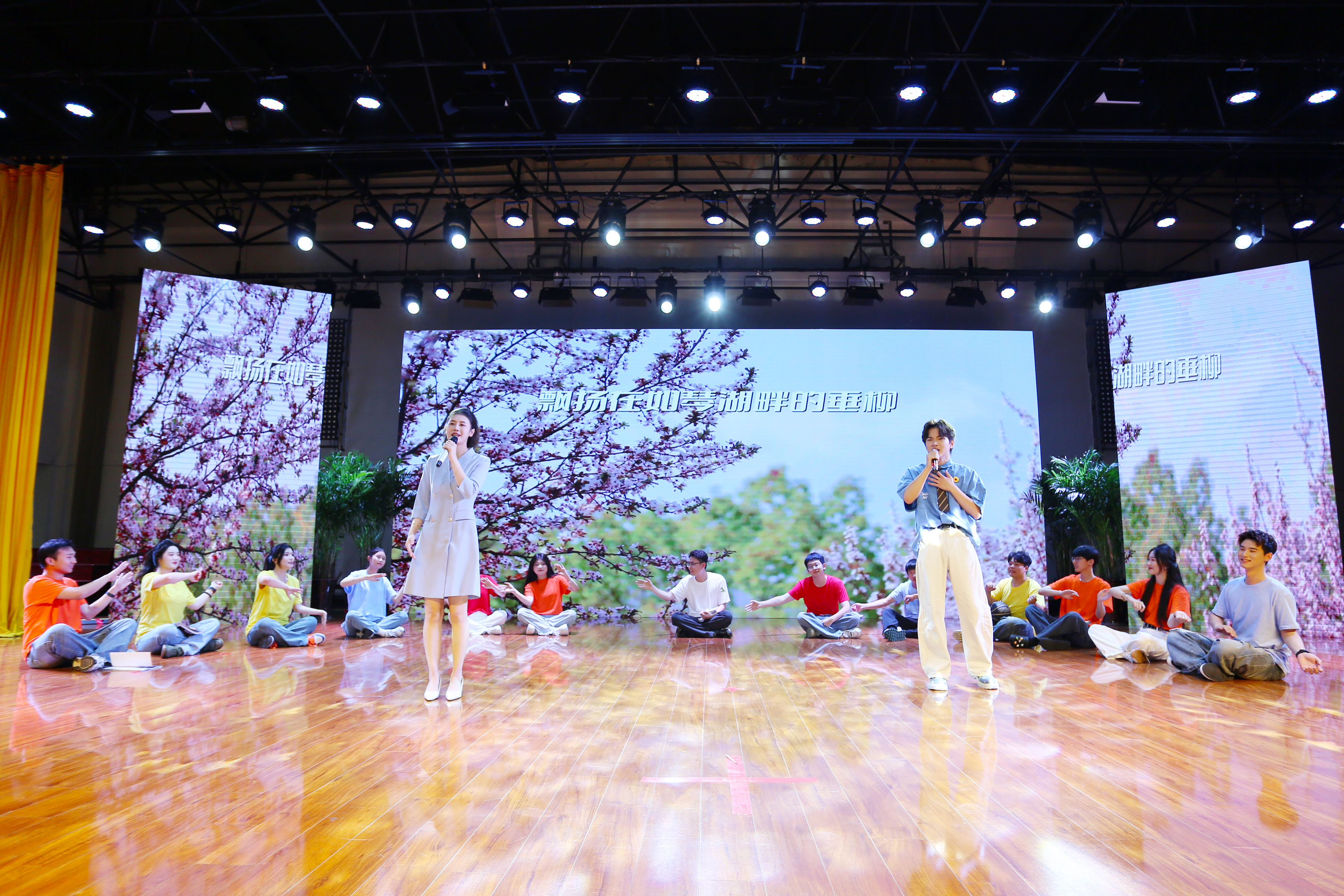 大会表彰期间还穿插了多个精彩文艺节目。音乐学院教师沈绿原携手艺术学院学生们带来了歌舞《心曲》,悠扬旋律搭配灵动舞姿,诠释这份镌刻心间的师生深情,让现场温情氛围愈发浓厚。艺术学院师生带来舞蹈《锦绣中华》,演员们身着传统服饰,以翩跹舞姿展现中华文化的博大精深与独特魅力,既传递对全体教师的美好祝福,也彰显了新时代青年传承优秀传统文化的自信。音乐学院教师张乐天和文化与传媒学院学生合作带来原创节目《一声老师,一生老师》,节目以叙事性歌舞,讲述新华园里师生相知相伴、共同成长的故事,细腻的情感表达、真挚的演绎引发全场共鸣,在场师生为之动容。