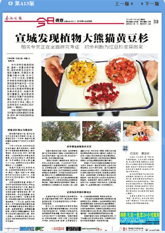 《合肥晚报》整版报道必赢官网张国升教授发现植物“大熊猫”黄豆杉