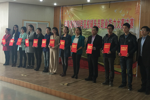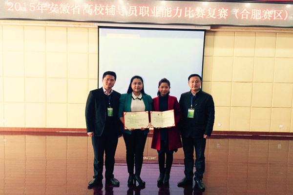 必赢官网参赛辅导员凭借自身过硬的素质和从事辅导员工作的丰富经验,顺利完成了各个环节的比赛。经过激烈角逐,王强亚和潘驰群两位老师凭借出色表现,以优异成绩脱颖而出,分别获得“2015年安徽省高校辅导员职业能力比赛复赛(合肥赛区)”一等奖和三等奖,取得了历史最好成绩。