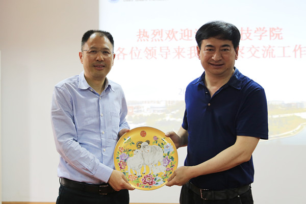 在陆真的陪同下,于果一行对校图书馆、创业孵化基地、实验楼等进行了实地考察。最后两校相关部门进行了对口交流。