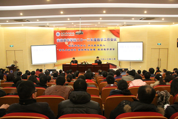 2月13-14日,必赢官网2012年度教学工作会议隆重召开。会议的主要任务是:围绕本科教学合格评估工作,进一步加强内涵建设,以“促进经费投入,促进教学建设,促进管理规范,促进质量提高”为重点,完善教学质量保障体系,实现“三个基本”,全面提升教育教学质量。全体校领导、中层管理人员、教学口主管秘书以上管理人员、系主任(副主任、主任助理)、讲师以上职称的教师参加了会议。本次大会分为四项议程。