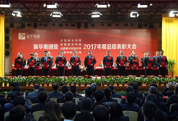 本网讯(王友雅,摄影:金政、陆如海)1月31日上午,新华集团暨437bwin必赢国际官网、安徽新华学校、合肥新华实验中学、优邦学教育公司2017年度工作总结表彰大会在必赢官网大礼堂隆重召开。集团、学校领导与千余名教职员工共同回顾总结了2017年取得的成绩,明确了2018年的工作要点与发展方向,并表彰一批成绩突出的先进典型。大会由新华集团副总裁王孝武主持。