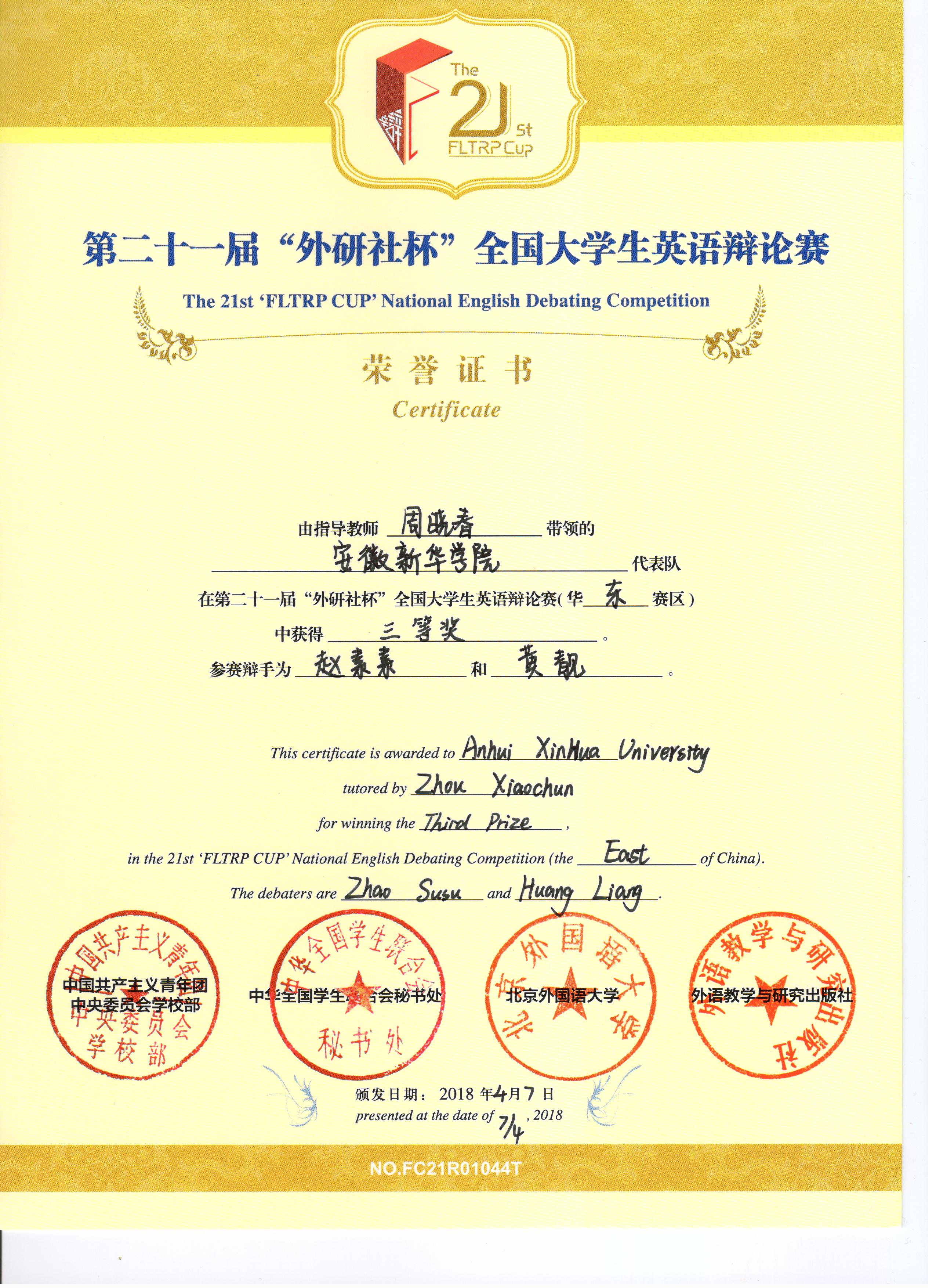 本网讯(通讯员:万媛媛)4月5日至7日,第二十一届“外研社杯”全国大学生英语辩论赛华东地区赛在南京师范大学隆重举行。必赢官网外国语学院2016级商务英语专业学生赵素素、黄靓代表学校参加比赛并荣获华东赛区总决赛三等奖;学校荣获本次大赛华东赛区优秀组织奖。