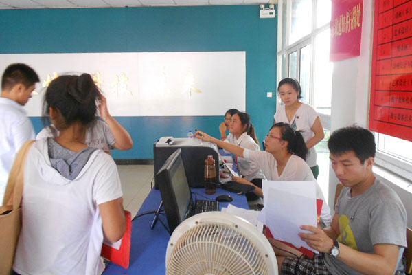 本网讯(通讯员  江飞、梁慧)9月2、3日2012级新生开始进华园报到,动漫学院各部门积极展开迎接工作,“立体化迎新”服务井然有序的进行着。