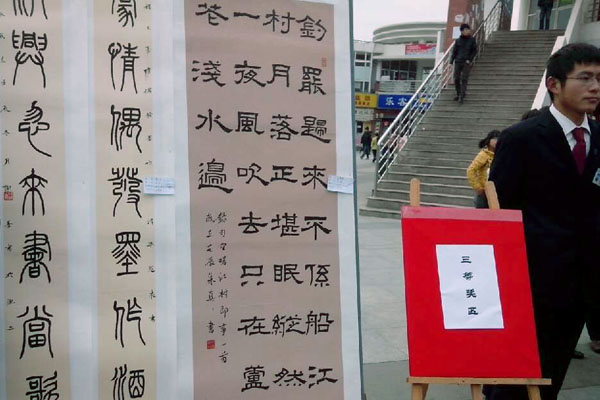 此次书画大赛面向437bwin必赢国际官网全体学生,经过征稿、整理、评选等一系列努力,最终从参赛的200余幅书画作品中筛选出了75幅优秀作品,并评出了一、二、三等奖,优秀奖和入围奖,部分优秀作品奖代表学校送选“合肥市大学生文化艺术节”。本次比赛的部分作品将在翰林广场上展出,同时展览的也将有入围“安徽省第十一届书院新人新作展”的特邀作品。