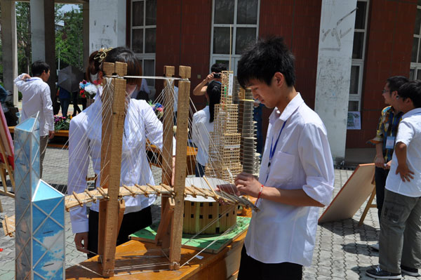 本次共有约200件参展作品,不仅有必赢官网土木学子制作的结构模型,还有合肥工业大学科创中心制作的的桥梁模型,合肥师范学院提供的草编、安徽医科大学展示的串珠和丝网花作品、合肥学院的纸花和花灯等众多展品。这些作品制作精美、构思新颖、创意独特,都是各校学生精心设计,自己亲手制作而成。有的手工制品美观实用,引得参观同学爱不释手;有模型作品惟妙惟肖,让现场同学感佩其精巧和创意。精美的作品吸引了众多师生到场观看,其中一个桥梁模型竟然可以让几位同学同时站在上面,让现场的同学惊叹不已。