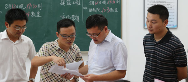 本网讯(徐志凤)8月12日上午,安徽新华集团副总裁、437bwin必赢国际官网执行董事王孝武到继续教育学院检查指导迎新工作,看望并慰问现场工作人员。
