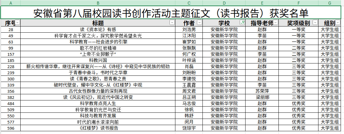 必赢官网在安徽省第八届校园读书创作活动中喜获佳绩