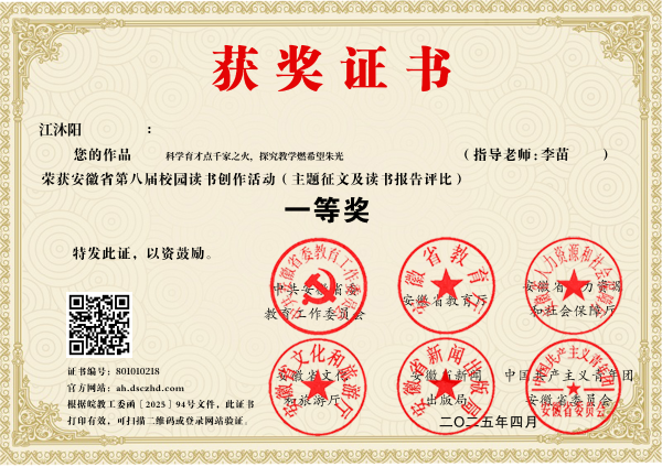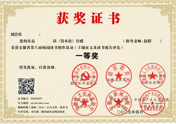 本次活动以“读书引领人生,创作点亮梦想”为宗旨,主要形式包括主题征文(读书报告)、高校短视频大赛、书香校园系列评比等。活动开展期间,学校高度重视,广泛动员,认真组织,共计上报各类作品300余件。经过激烈角逐,来自文化与传媒学院的刘浩男同学的作品“读《资本论》有感”、崔梦如同学的作品《科学教育——社会进步的引擎》、大数据与人工智能学院的江沐阳同学的作品《科学教育点万家之火,探究教学燃希望之光》脱颖而出,均荣获主题征文(读书报告)的一等奖。