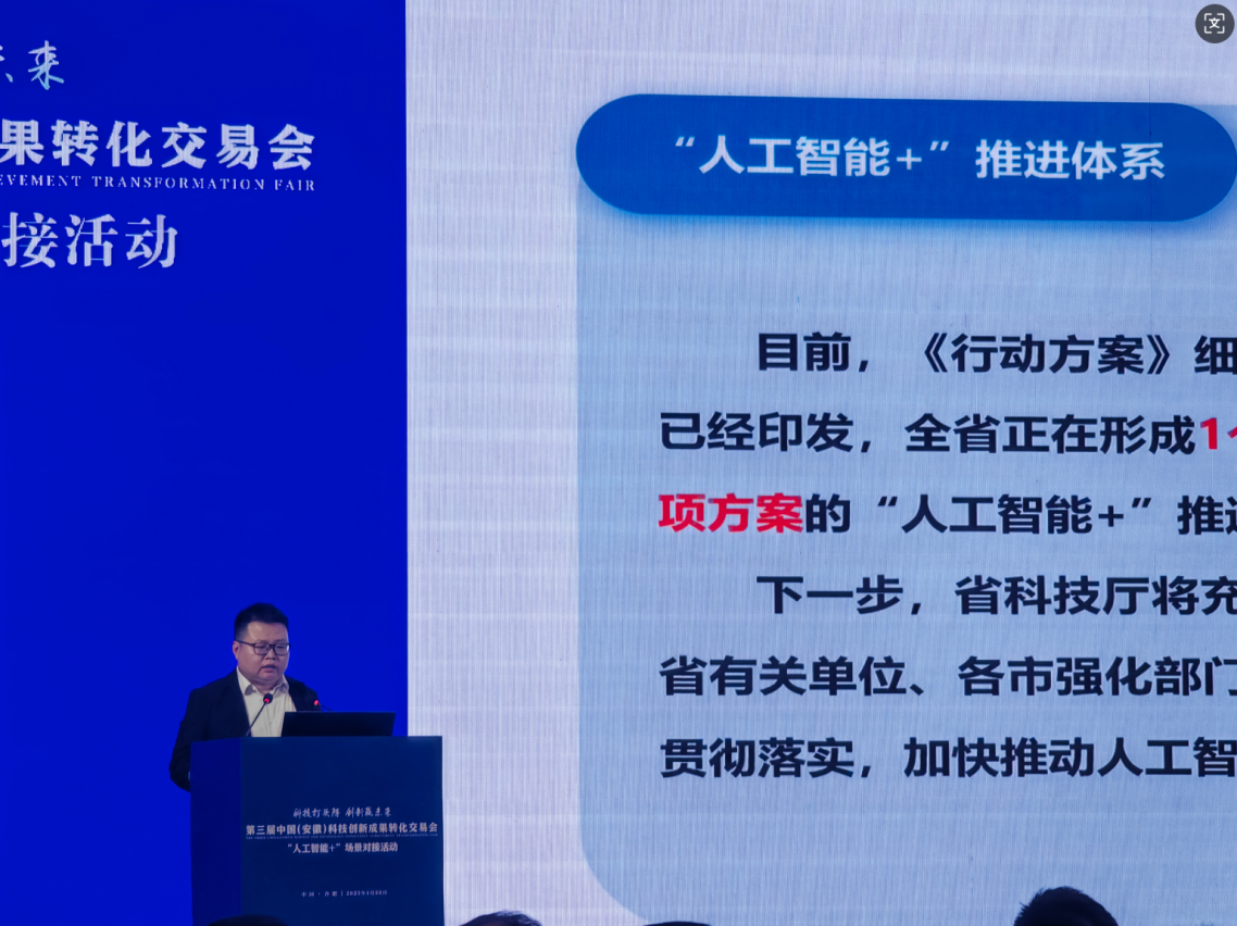 活动第一阶段,由安徽省科学技术厅党组成员、副厅长李国阳致辞,他重点强调安徽将通过政策赋能与生态构建,加速人工智能全产业链创新。