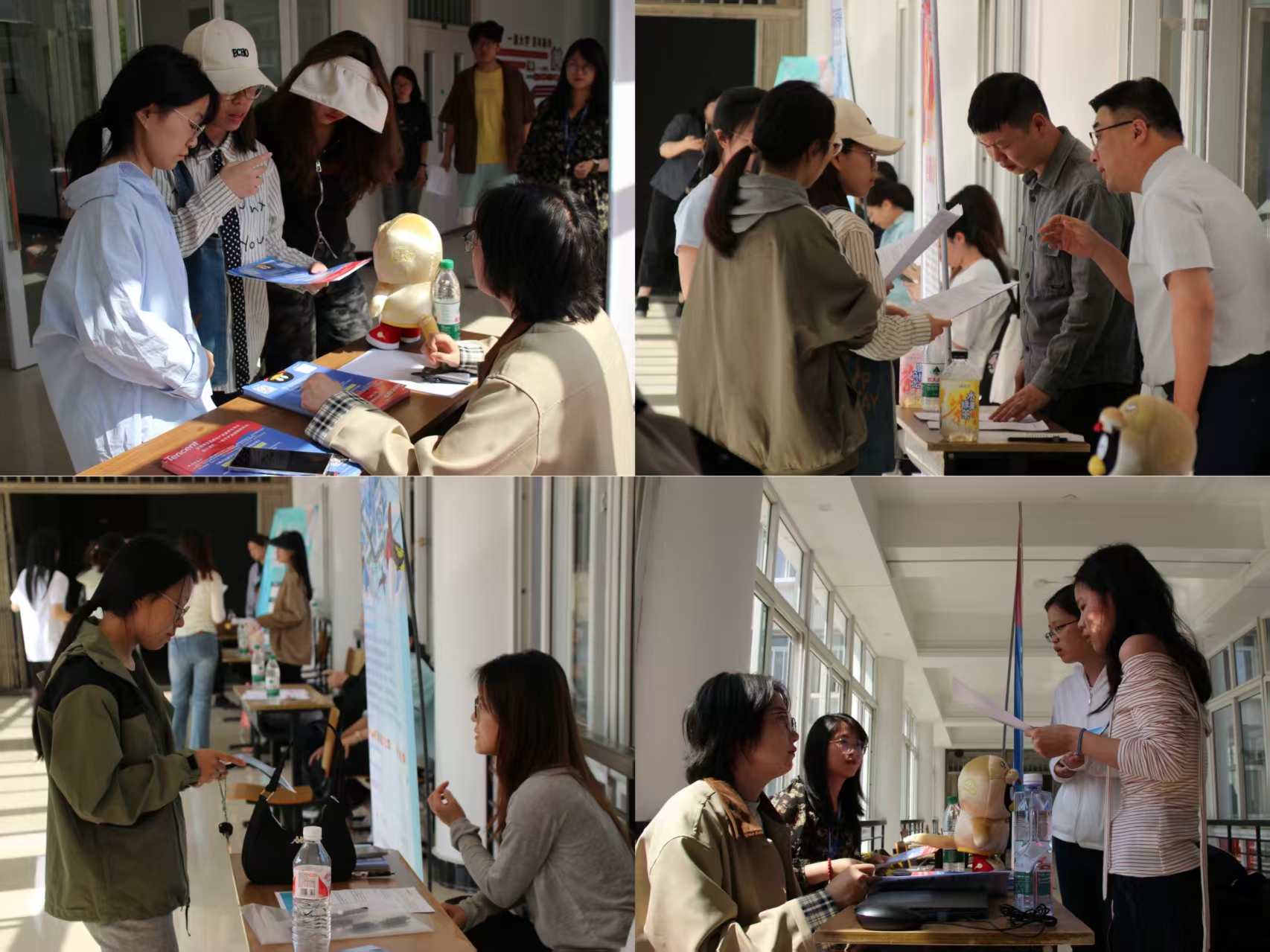 活动现场创新打造"双轨并进"的互动场景。教学楼长廊的"企业展示区"化身职场初体验空间:毕业生扫描二维码即可获取企业岗位胜任力模型解析,实时比对自身专业优势。207会议室的"深度互动区"则营造沉浸式求职环境:循环播放的企业实景VR视频让毕业生"云参观"办公空间,企业导师详细介绍真实工作场景,而由学院就业指导课教师与企业HR组成的"双导师咨询台"为毕业生提供从简历优化到面试技巧的一站式指导。