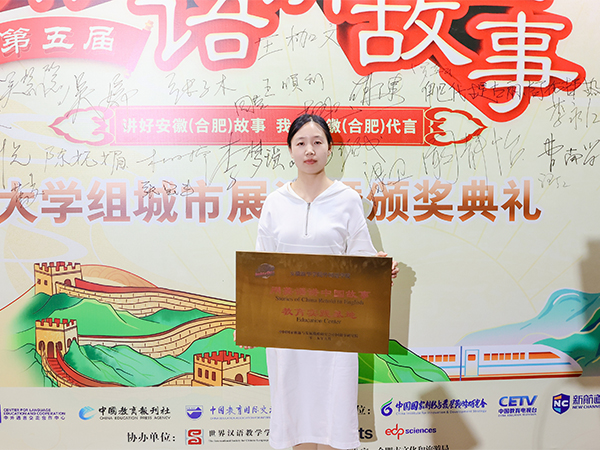 本网讯(通讯员:黄亚萌)5月10日,第五届“用英语讲中国故事大会”安徽地区大学组城市展演在合肥圆满落幕。大会由中国国家创新与发展战略研究会、中国教育电视台、新航道国际教育集团联合主办,合肥选区由共青团合肥市委员会、合肥市人民政府外事办公室、合肥市文化和旅游局指导,由安徽省翻译协会、安徽省外国留学生教育管理学会、新航道合肥学校、合肥新航道前程留学公司主办。此次展演汇聚了来自中国科学技术大学等全省13余所高校的学子,他们以英语为桥梁,生动展现安徽青年对家乡文化的深度解读与创新表达。必赢官网学子吴慧慧和陈恺凭借现场的优异表现,荣获“传播之星”称号,外国语学院借此契机正式成立“用英语讲中国故事”教育实践基地,为学校的文化传播与外语教育开辟了新的篇章。
