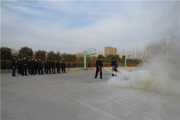 动员结束后,保卫处先后组织保卫人员学习了高校保卫工作相关规章制度、处置突发事件流程、消防知识及如何做一名优秀的高校保安员等内容。针对目前工作中存在的不足及下一步如何做好本职工作等问题,参训人员展开了积极的讨论。同时,为提高保卫人员军事素质及防范技能,校保卫处在学校训练场分别组织开展了队列训练、灭火、防爆演练等训练科目。