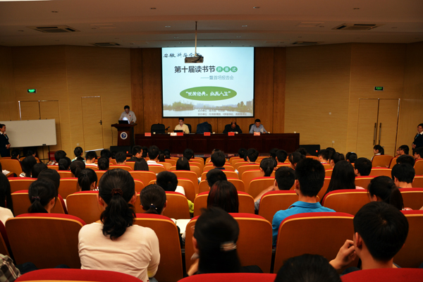本届读书节以“悦读经典,点亮人生”为主题,校团委书记吕翔详细介绍了本次读书节的活动方案,学生代表向全体师生发出崇尚读书、品味经典、谨慎阅读以及争做文明读者的倡议。