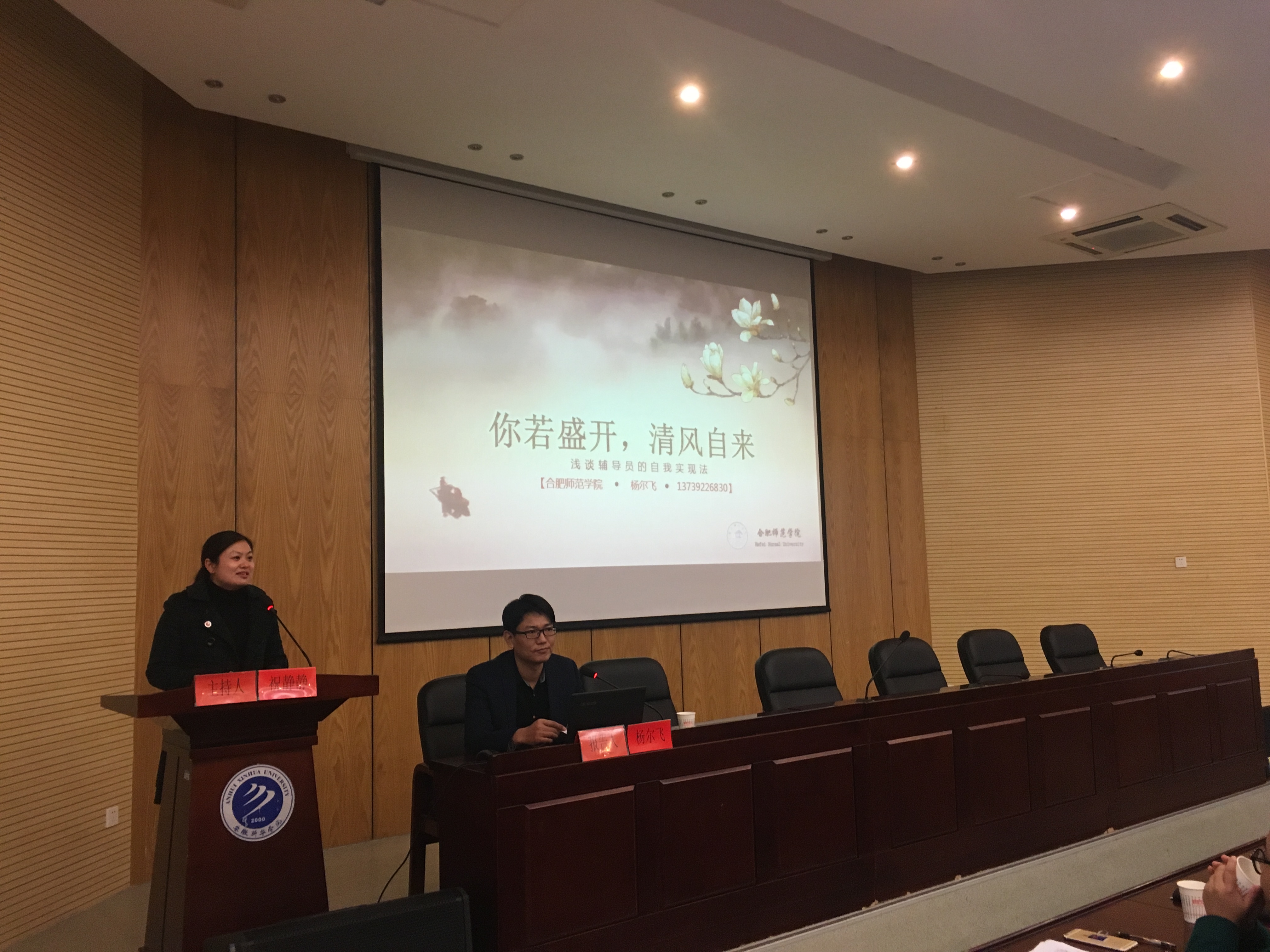 本次培训结合辅导员工作及自身发展需要,特邀安徽中医药大学学生处副处长冯祥、2015年省级优秀辅导员代表杨尔飞作专题报告。冯祥以“新形式下辅导员工作的挑战和机遇”为主题从新形势下辅导员工作体会、辅导员队伍建设探索、辅导员职业发展思考三个方面出发,结合“高等学校辅导员职业能力标准”进行了详细的解读和分析,让大家对辅导员应有的素质和能力有了深入认识,明确了自我提升的方向及标准。随后,杨尔飞作主题为“你若盛开,清风自来”的分享,他用真诚幽默的语言,对他六年的辅导员工作经验进行了阐述,用生动具体的案例分享了辅导员工作的感悟与感动,让大家产生强烈的共鸣。在场学工人员就学生管理、班级建设等问题与杨尔飞进行深入交流。