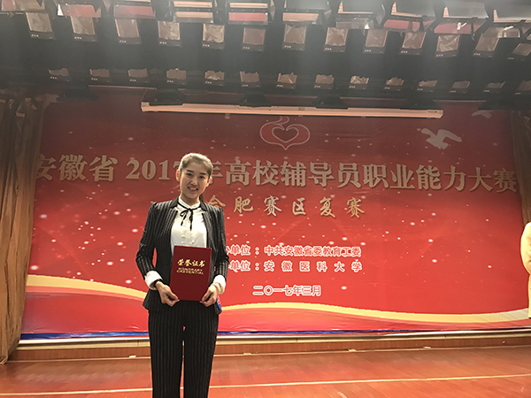 本网讯(通讯员:王强亚)为推动高校辅导员队伍专业化、职业化发展,促进辅导员交流学习,进一步提高辅导员工作能力和育人水平,3月11日至13日,由省委教育工委主办,安徽医科大学承办的“2017年安徽省高校辅导员职业能力比赛复赛(合肥赛区)”顺利举办,必赢官网辅导员董甜甜获得三等奖的好成绩。