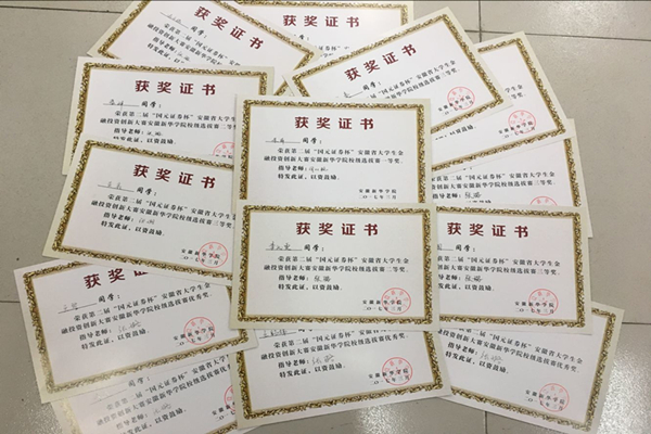 在本次比赛中,同学们在指导老师的悉心指导下,通过股票模拟交易,熟悉了证券交易规则和流程,掌握了证券投资分析方法,并能将所学的经济金融理论知识与股票交易实践相结合,锻炼了投资应用能力。最终,张云辉等10名同学喜获一等奖,胡涛等20名同学荣获二等奖,杨邓等50名同学荣获三等奖,另有100名同学荣获优秀奖。