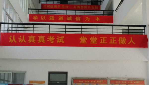 为营造积极的考风、学风,商学院向全院征集诚信考试标语,最后选中三条"认认真真考试,堂堂正正做人;学以载道,诚信为本;与诚信携手同行,与舞弊挥手告别"。活动意在号召同学们排除外界干扰,正确认识考试对评价自己的重要性;充分利用一切时间,认真复习,自信应对考试;诚信应考,不作弊,敢于承认学习上的失误,勇于公平竞争;在不良念头面前,严于自律。