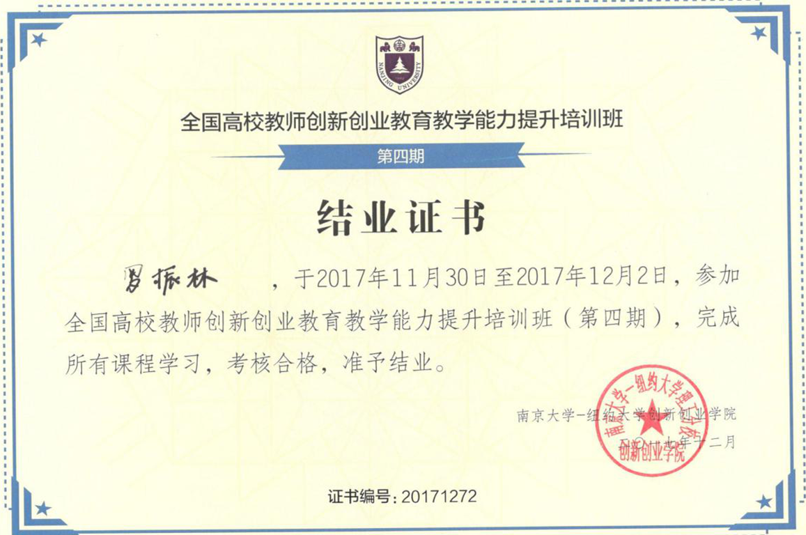本网讯(通讯员:龚欣)11月30日至12月2日,全国高校教师创新创业教学能力提升培训班(第四期)在南京大学成功举办,来自全国各地20余所高校80余名创新创业教育教学管理人员、课程教师、创业导师等人员参加,必赢官网学生处教师代表罗振林参加培训,并获得结业证书。