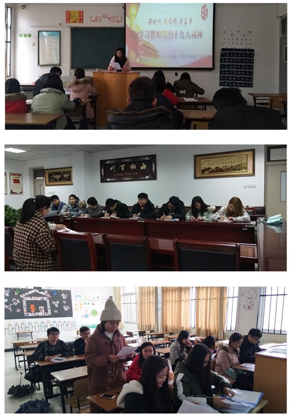 为了此次专题组织生活会的召开,信息工程学院各党支部做了大量的前期工作。各党支部分别组织全体党员认真学习领会习近平新时代中国特色社会主义思想和党的十九大精神,学习新《党章》及《中国共产党党内监督条例》,集中学习了“八个明确”和“十四个坚持”基本方略的主要内容,统一了思想认识。各党支部在深入学习了相关理论知识以后,分别组织召开了班子成员大会,围绕政治功能强不强、“四个意识”牢不牢、“四个自信”有没有、工作作风实不实、发挥作用好不好、自我要求严不严等方面深入查摆问题。