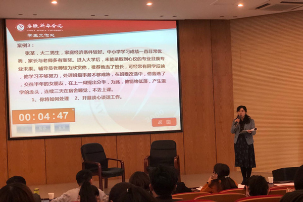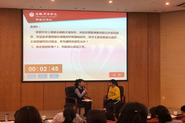 本次大赛分为主题演讲、班情熟知、案例分析和谈心谈话四个环节,综合考察了辅导员的语言表达能力、活动组织策划及实施能力、思想教育、心理辅导能力、日常事务处理能力等多方面的知识和技能,全方位地展现了辅导员的个人素养、知识储备和专业技能。决赛中,两位选手沉着冷静、思维清晰、从容不迫,受到参赛评委的一致认可和好评,其中胡晶晶获得大赛二等奖、谷学颖获得“最佳风采奖”。