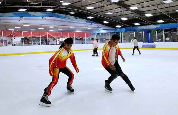 为在比赛中取得好成绩,通识教育部教师张爱臣带队分男女两批分别于4月26日、29日赶赴北京集训。抵达北京后,队员们便投入到紧张的冰球训练当中。